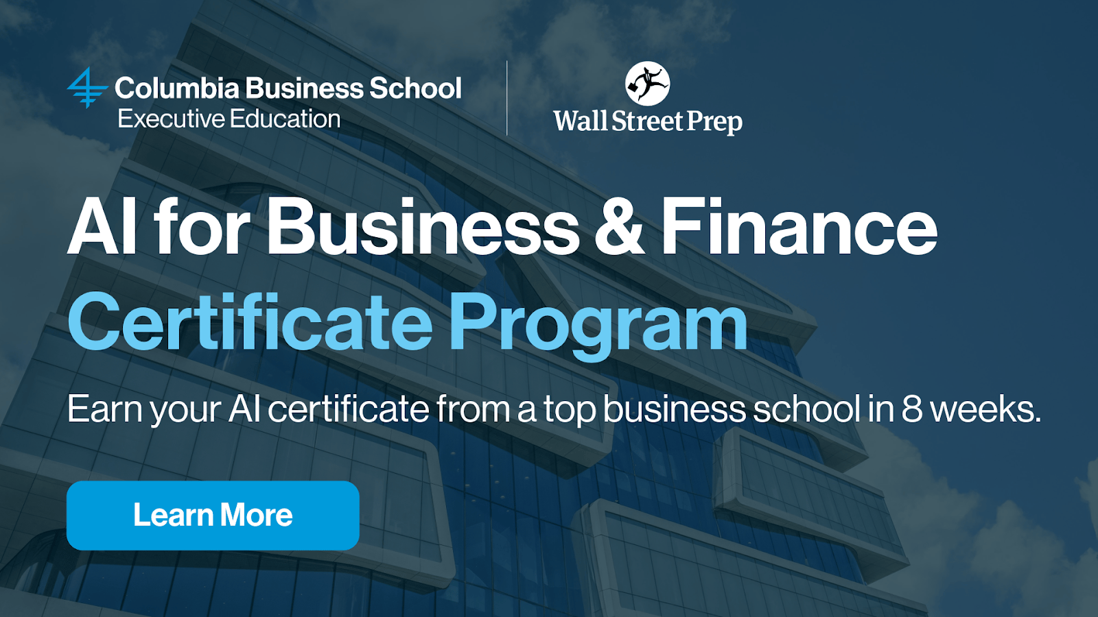 Columbia Business School Exec Ed and Wall Street Prep launched a comprehensive online program on AI for Business & Finance, covering everything from GenAI foundations to advanced ML, all while offering access to a global network of industry veterans. Learn more below.
