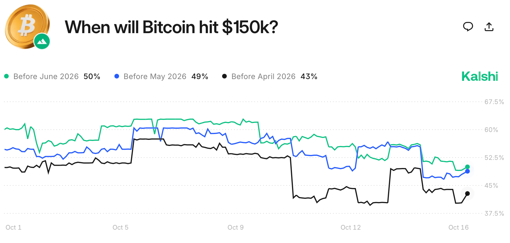 Bettors on Kalshi are predicting when will Bitcoin hit $150k?