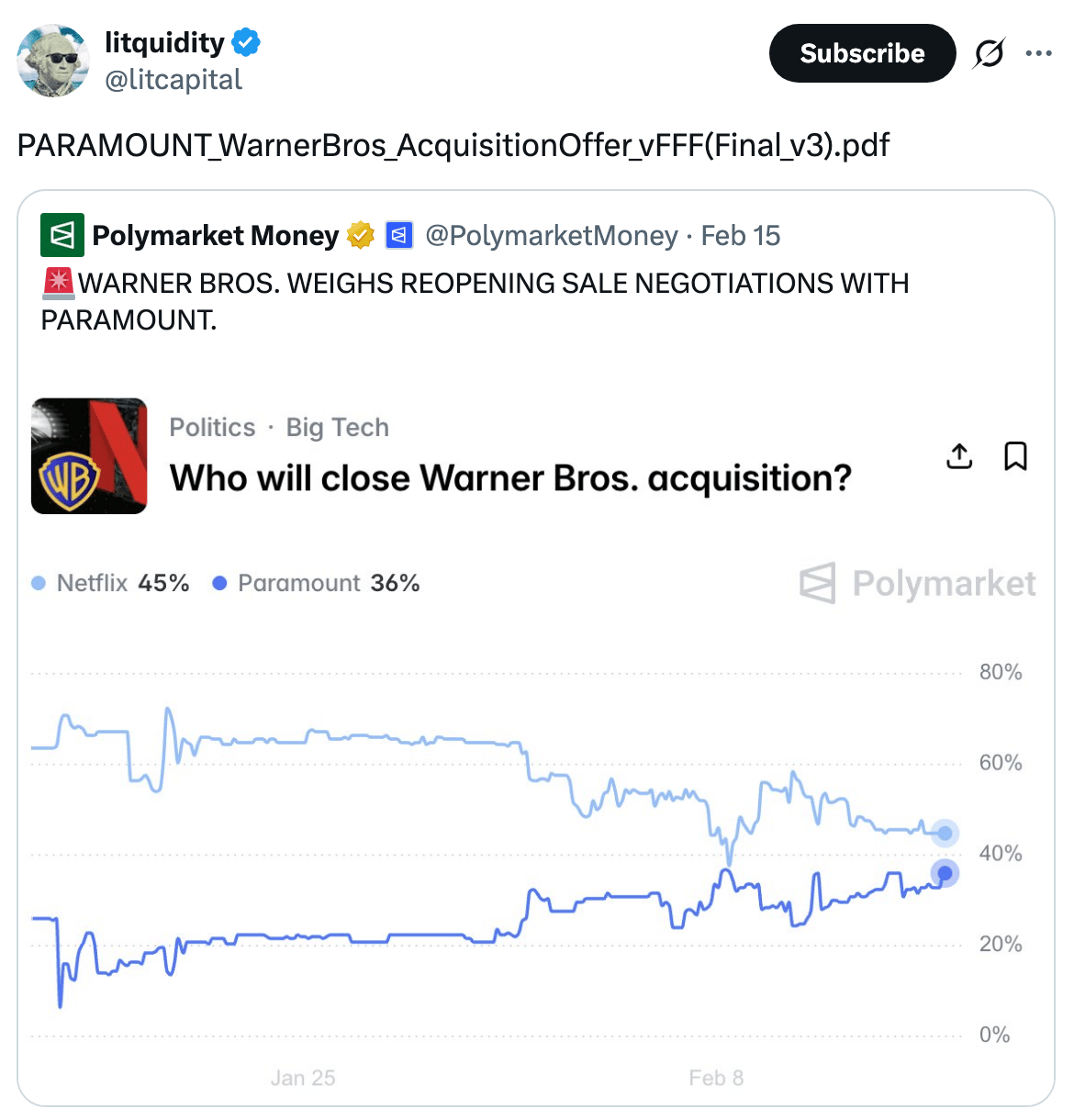 Warner Bros. reopened talks with Paramount, Goldman will drop DEI from all board hiring, Mamdani proposed a 10% property tax hike to close NYC's budget gap, PE-backed SaaS firms are releasing earnings early to calm AI fears, and Palantir moved their HQ again from Denver to Miami.