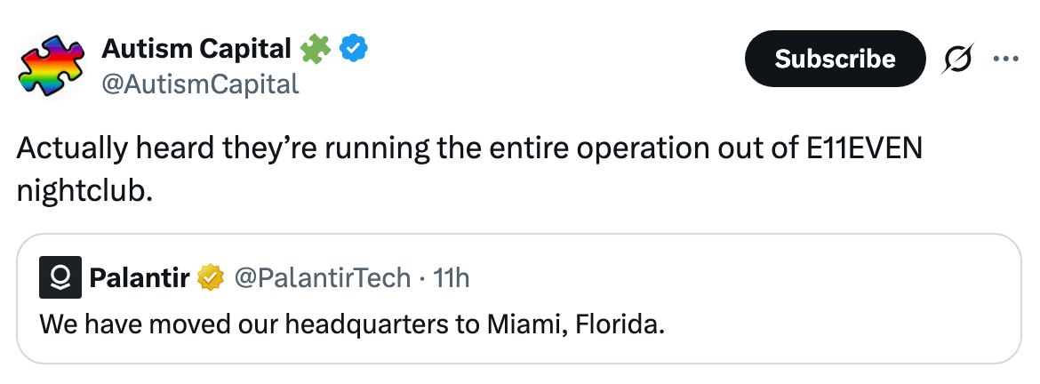 Palantir moved HQ again from Denver to Miami (CNBC)