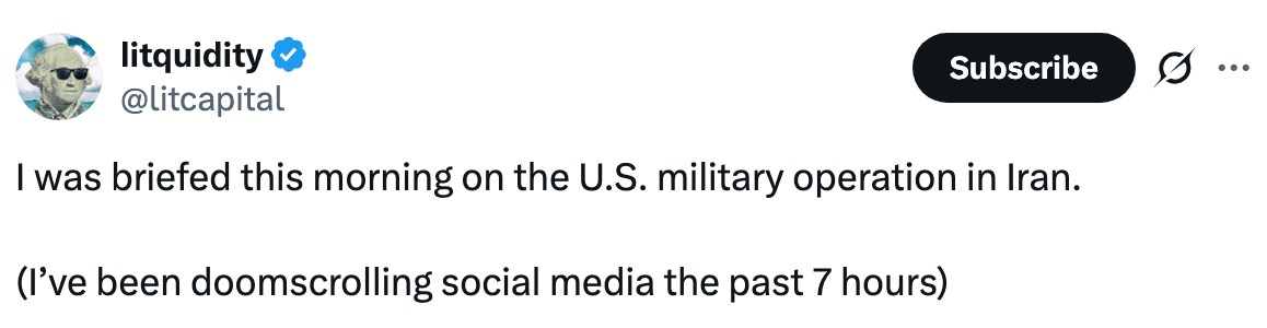 A long weekend of monitoring the situation. A long week ahead of monitoring the portfolio (and filling in the Europeans on everything they missed outside work hours)…🤦